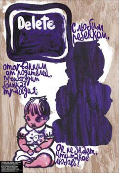 Там написано: "С любым ребёнком, оторванным от родителей, происходит большая трагедия: он не знает, что такое любовь!" И кнопка "Delete" - "уничтожить".