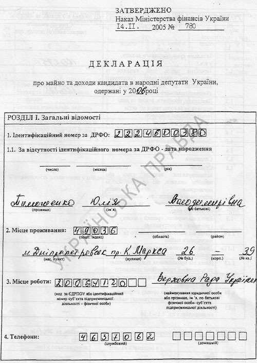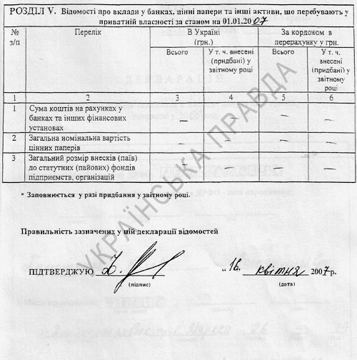 Щоправда, у декларації за 2006 рік немає графи про доходи членів родини Тимошенко.