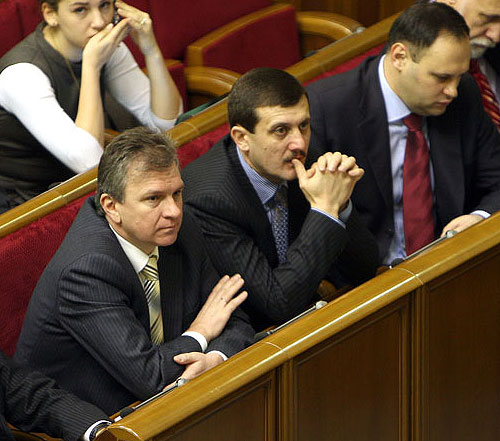 | Ігор Кріль та Василь Петьовка - сусіди в сесійній залі. Фото прес-служби "Нашої України" |