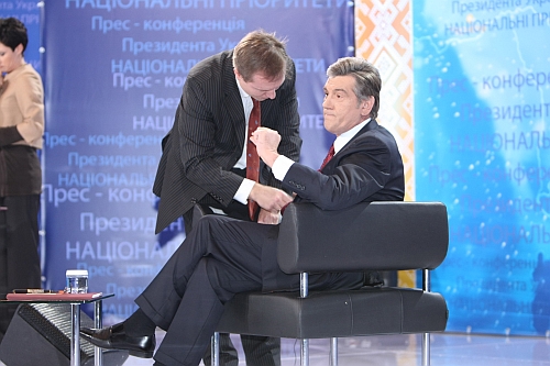| По закінченні конференції Ющенко сказав, що в нього ніколи не було настільки добрих взаємин з урядом, як зараз. І поцілував Тимошенко |