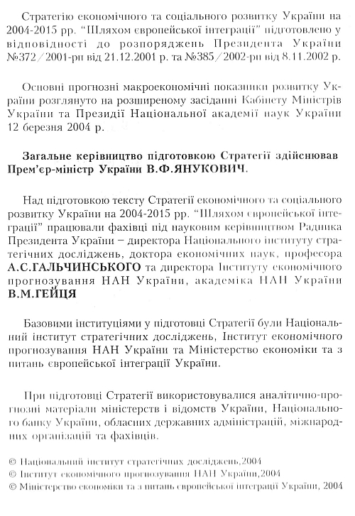 У книжці гордо (виділено жирним) зазначено "Загальне керівництво підготовкою Стратегії здійснював прем'єр-міністр України В.Ф.Янукович".