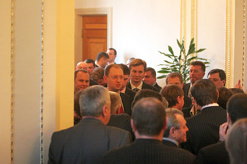 У вівторок Партія регіонів заблокувала голову Верховної Ради Арсенія Яценюка в його кабінеті. У середу прес-служба спікера надала документальне тому підтвердження - фоторепортаж з місця події.