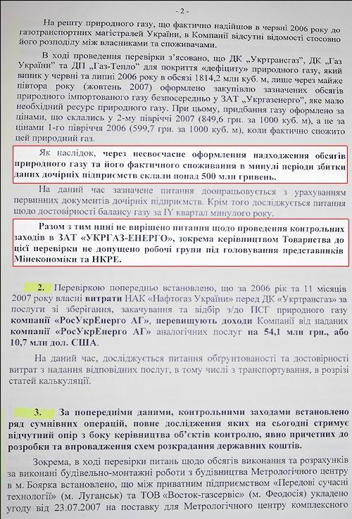 Наприкінці січня на стіл Юлії Тимошенко було покладено довідку Контрольного-ревізійного управління, в якій ішлося про суттєві порушення у відносинах цих двох компаній.