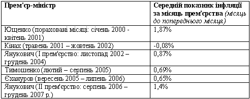 Легше прем'єру Ющенку було і тому, що напередодні його прем'єрства в 1999 році не було такого розриву в цінах виробників і споживачів, а в 2007 році такий розрив був – 23,3% проти 16,6%. Тобто "інфляційний навіс" перед прем'єрством Ющенка був меншим.