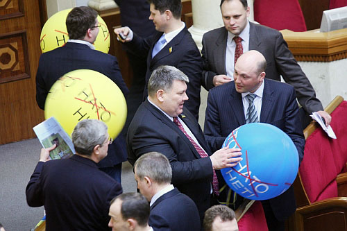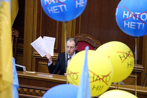 "На превелике щастя, це сталося. Протокол порозуміння підписаний, який набирає чинності після голосування за постанову по НАТО", - сказав спікер Арсеній Яценюк, і "регіонали" пішли здувати свої кульки.