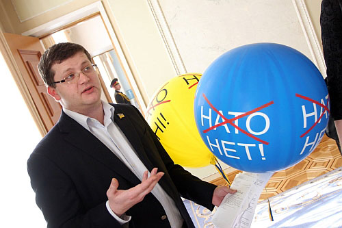 | Опозиція вирішила прибрати із сесійної зали антинатовську атрибутику. |