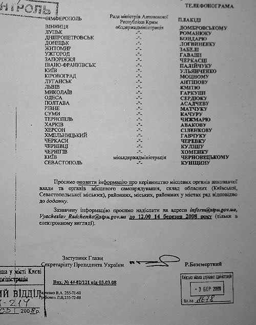 За інформацією "Української правди", ці списки могли бути складені на основі даних, які раніше запитував заступник голови секретаріату президента Роман Безсмертний. На початку березня його служба розіслала листи головам обласних державних адміністрацій з проханням надати інформацію про керівництво місцевих органів влади.