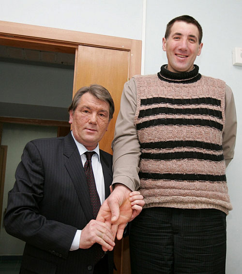 У понеділок президент Віктор Ющенко ощасливив найвищу у світі людину Леоніда Стадніка, вручивши ключі від спеціально переобладнаного під нього авто марки міні-вен Chevrolet.
