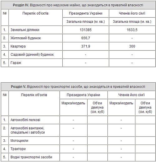 Майже мільйонні кошти, зароблені президентом, ніяк не позначилися на його маєтностях. Земельні ділянки, квартири в Києві і будинок в Безрадичах залишилися в межах задекларованих за 2006 рік.