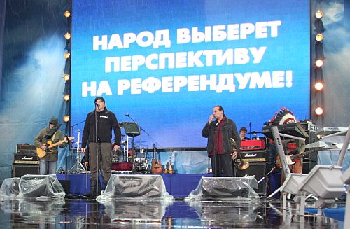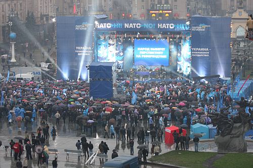 У четвер Партія регіонів провела низку антинатівських мітингів у різних містах країни, на яких співали Софія Ротару, Сергій Лазарєв, Олег Газманов, "Агата Крісті" та інші.