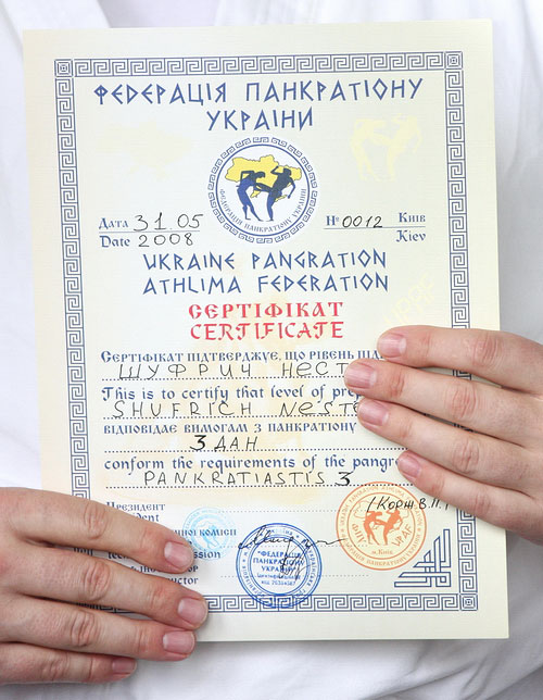 А після бою Шуфричу вручили сертифікат про присвоєння йому третього дану з панкратіону. Мабуть, депутат виявився рекордсменом зі швидкості посвячення у ранг.