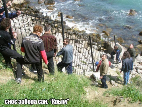 Місцеві жителі самі в суд поки не здогадалися подати. Однак перший, дерев'яний, паркан зламали. У відповідь – берегова зона зміцнилася прутами непохитного заліза, з'явилися ґрати уздовж дикого пляжу, улюбленого і приїжджими відпочиваючими, і місцевими.