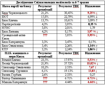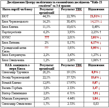 Втім, це ще не все. Дослідники Центру політичних та економічних досліджень "Київ-21 століття" також трудилися протягом 3-6 травня і дали БЮТу ще кращі результати.