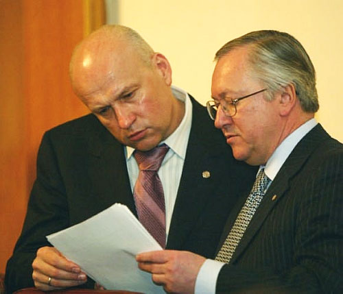 | Екс-керівник секретаріату президента Олег Рибачук і екс-міністр закордонних справ Борис Тарасюк. Фото прес-служби Кабміну |