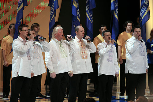 Сцену палацу "Україна" перетворили на величезний екран, де одне гасло ЄЦ змінювалося іншим. Нагадувало це все величезний монітор комп’ютера, на якому завантажили веб–сторінку "Єдиного Центру".