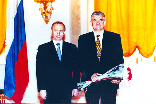 | ... на которой Путин изображен с руководителем Академии проблем безопасности, обороны и правопорядка Виктором Шевченко. Фото с сайта Академии |