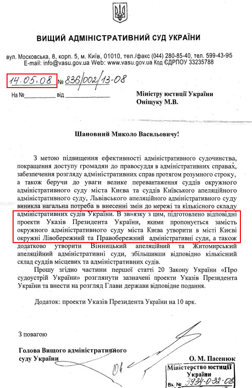 | За цим листом від травня 2008 Ющенко розігнав Окружний адмінсуд Києва |