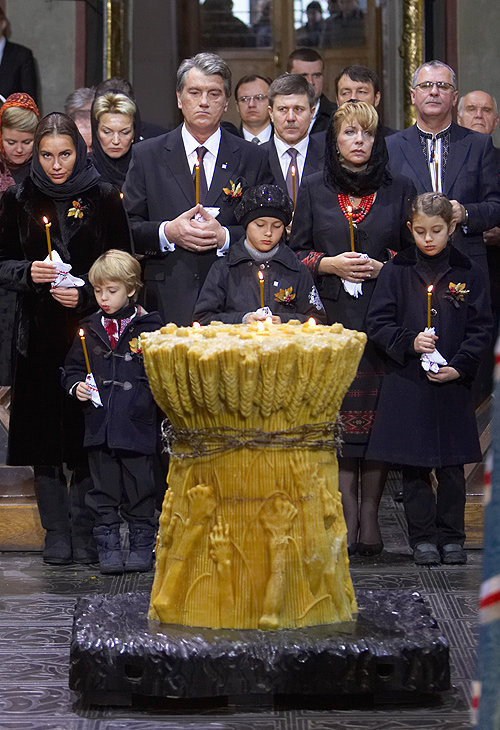 Пізніше він з родиною, члени уряду та інші політики взяли участь у панахиді й молитві по померлим від голоду "Зі святими упокій..." у Софійському соборі.