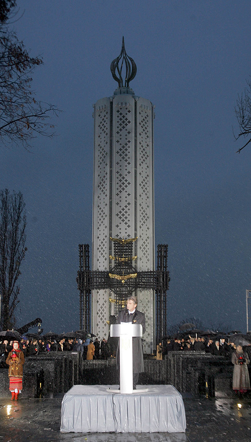 Вдень відбулися церемоніальні заходи біля Меморіального знаку "Свічка пам'яті". Меморіал пам'яті жертв Голодоморів було освячено, присутні поклали до нього горщики зі свічками. Звідти Ющенко звернувся до українського народу, після чого було оголошено загальнонаціональну хвилину мовчання та розпочалася акція "Засвіти свічку".