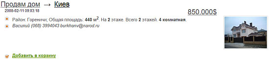 Зараз, після падіння цін, спричиненого кризою, подібна, як каже Ганна Герман, "сільська хата" коштує від 500 до 850 тисяч доларів.