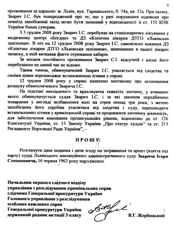 У розпорядження "Української правди" потрапив текст подання до Верховної Ради, зробленого слідчим у цій справі Володимиром Жербицьким.