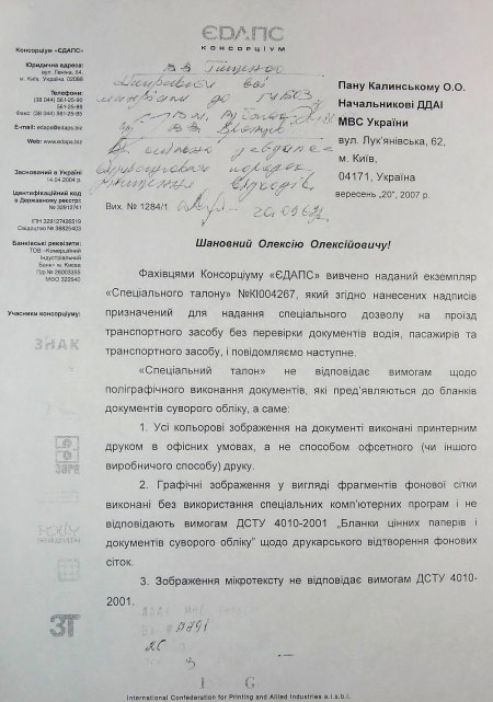 Так, в документе, приведенном выше, значится "спецталон" за подписью Г.Георгиенко. Последний совсем недавно назначен заместителем Сергея Коломийца, утверждающего, что Госавтоинспекция никаких спецталонов не выдает.