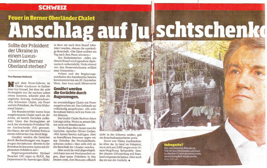 Статтю про те, що Ющенко перед святами відпочивав на швейцарському лижному курорті Гштаад в орендованому приватному будинку, який було знищено вогнем, оприлюднила британська газета "Independent".