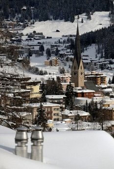 Реклама "Сбербанка России" окупувала всі лайтбокси Давосу, вільні від реклами коштовностей Bucherer, а паркани запрошували відвідати інвестиційний форум у Сочі в другій половині року.
