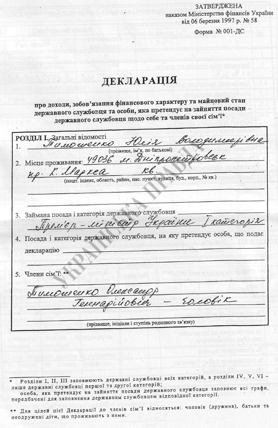 У розпорядження "Української правди" потрапила декларація про доходи, отримані Юлією Тимошенко в 2008 році.