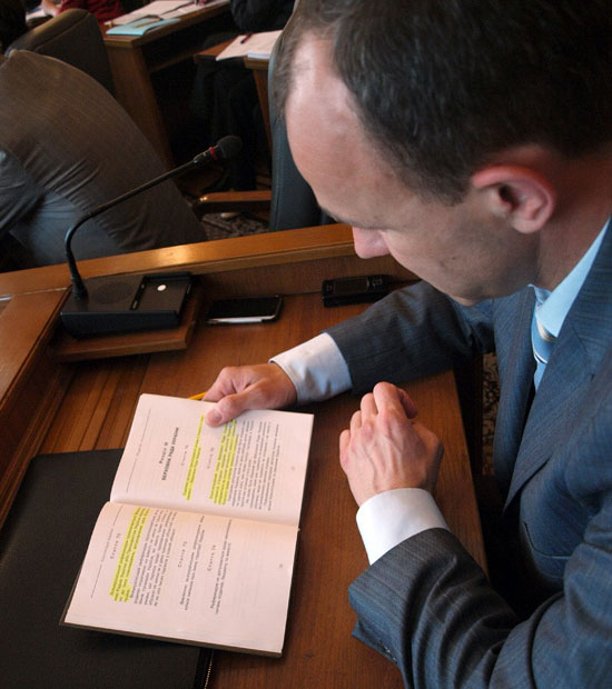 Как раз в этот момент Кожемякин в это время был поглощен четвертым разделом. На белой странице желтым фломастером была выделена 75 статья: "Єдиним органом законодавчої влади в Україні є парламент – Верховна Рада України".