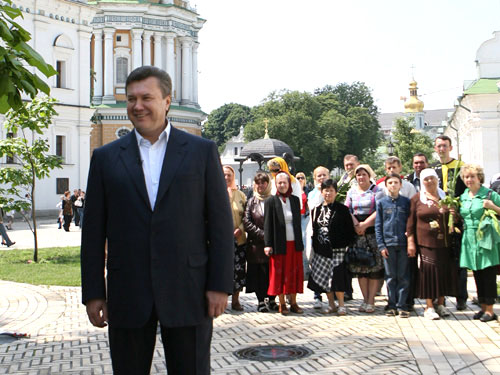 У неділю Віктор Янукович прибув до Києво–Печерської Лаври без тіні святкового настрою на обличчі. До храму його супроводжували Микола Азаров, Сергій Льовочкін, Василь Горбаль та Олександр Лавринович. Очікувалось, що буде також Юрій Бойко, але він несподівано не з’явився.