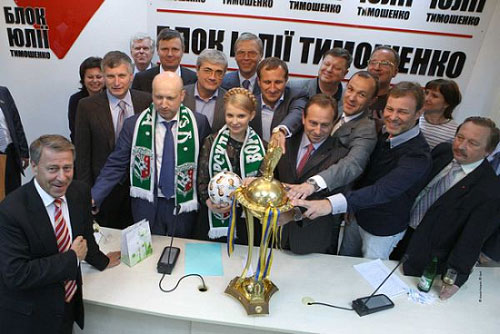 | БЮТ святкує перемогу "Ворскли" в Кубку України. Власник команди - депутат від БЮТ Костянтин Жеваго. Фото О.Прокопенка |