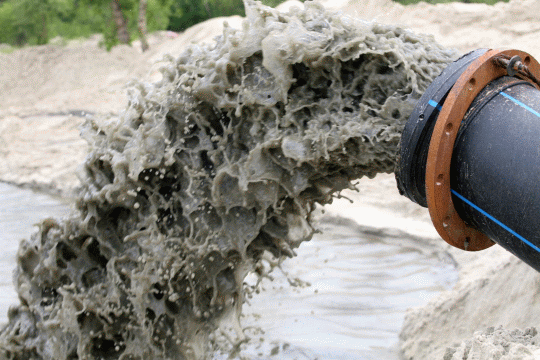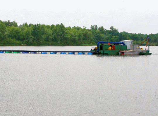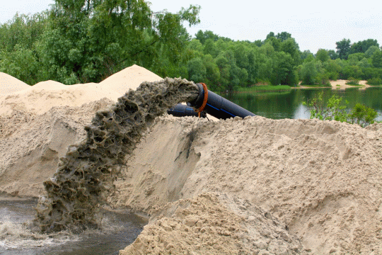 Земснаряд – невелике судно з насосами та трубами, вартістю в двісті тисяч доларів. Воно заганяється в затоку і висмоктує мул з дна річки. На березі волога маса за кілька днів стає чистим річковим піском.
