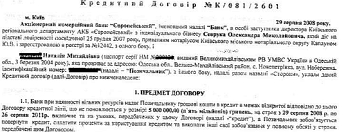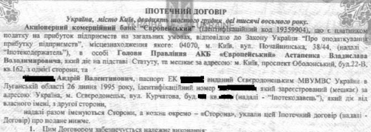 В марте этого года корреспонденту УП удалось ознакомиться с копиями нескольких кредитных договоров банка "Европейский", которые впоследствии легли в основу процедуры рефинансирования.