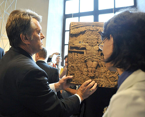 Говорячи про виставку, президент зазначив, що йдеться про унікальні експонати пластичного мистецтва України. "Ми будемо захоплюватися усім духовним мистецьким рядом, починаючи від Трипілля і завершуючи сучасним мистецтвом", - сказав Ющенко у своєму виступі.