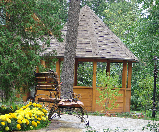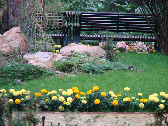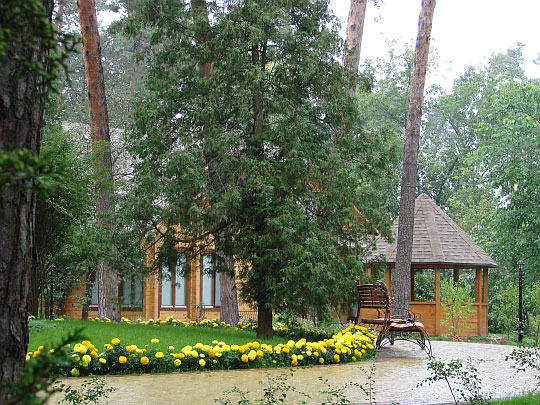 Сьогодні у Медведька гарно оздоблена територія площею близько півгектара. Відчувається, що її охайно доглядають садівники.