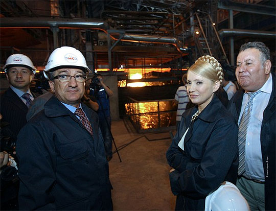 Тарута, який разом з Гайдуком є співвласником Індустріального союзу Донбасу, провів для Тимошенко екскурсію по своєму комбінату.