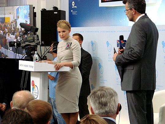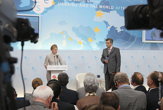 Але гості думали про Юлію Тимошенко, яка підняла в повітря урядовий літак, щоб на декілька годин побувати в Криму і провести презентацію самої себе перед європейськими гостями Віктора Пінчука.