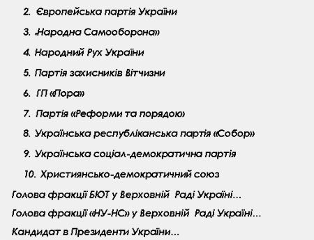 У проекті названі 10 партій, які можуть висунути Тимошенко в президенти.
