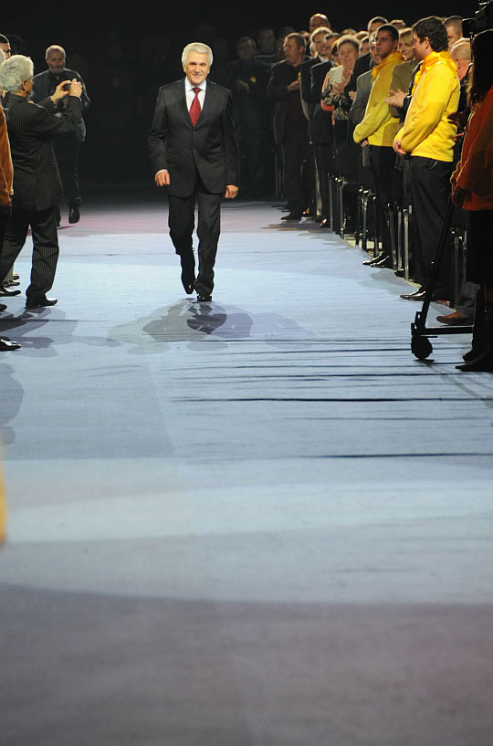 Коли розповідь про спікера-рятівника України добігла кінця, настав час побачити цю диво-людину живцем. Володимир Литвин зайшов до зали через центральний прохід, який оточили його прихильники. В ідеально зшитому італійськими кравцями костюмі, Литвин був схожий на кутюр'є, що на знак подяки виходить до публіки після завершення показу.