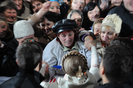 Коли годинник на Будинку профспілок пробив шосту, над сценою зазвучав голос, добре відомий з подій 2004 року. Він повідомив, що п’ять років тому тут було виборено право на свободу, а тепер звідси у президенти буде відправлено "вірну доньку українського народу" – Юлію Тимошенко.