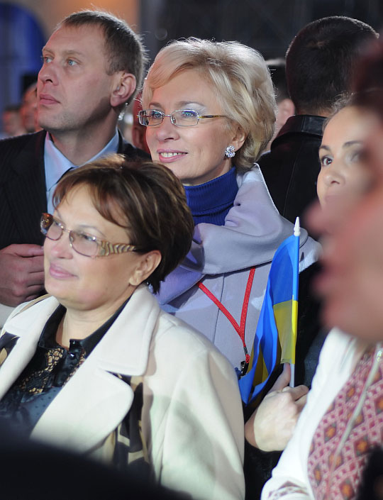 ...Народ продовжував прибувати на Майдан. У числі інших з'явилася міністр праці Людмила Денисова, вуха якої прикрашали до непристойності яскраві діаманти. Камінці засліплювали оточуючих, коли промінь прожектора потрапляв на членкиню уряду.