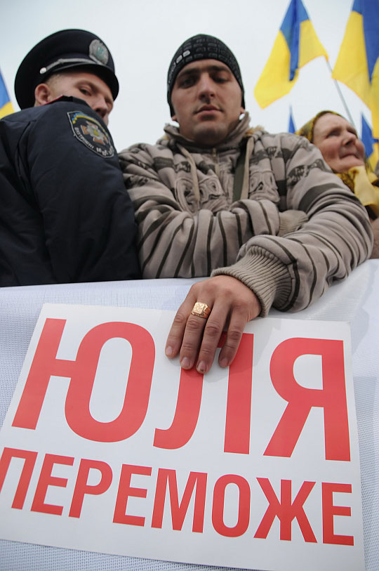 – Я пропоную сьогодні створити народний фронт на захист Юлії Володимирівни, – продовжував Кравчук у мікрофон. – Вона єдина тримається і бореться з кризою.