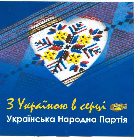Навесні 2005 року, під час підготовки до парламентської кампанії-2006, креативна група, яку я очолювала, запропонувала керівництву Української народної партії рішення: "вишите сердечко" та гасло "З Україною в серці".