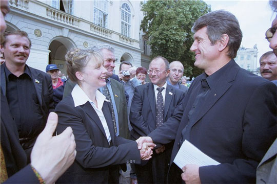 | Ющенко і Тимошенко у Львові. Чорновіл - ліворуч |