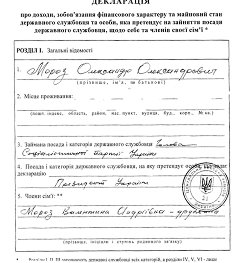 На утримання майна Мороз витратив 14 400 гривень. Єдине майно в екс-спікера квартира на 107 квадратів. Далі традиційна картина для багатьох кандидатів – ні кола, ні двора, ні машини.