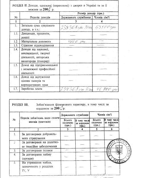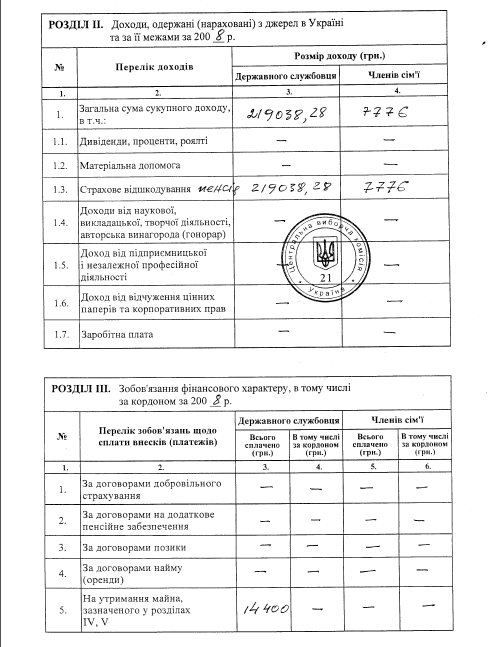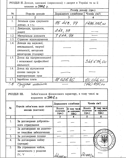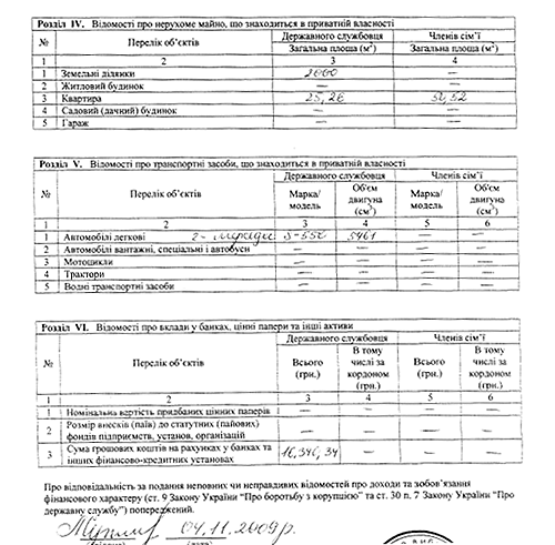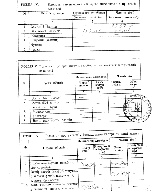 На рахунку в банку у Гуменюка 65 986 гривень. У дружини - пусто. Зате вона має внесок до статутних фондів підприємств на рівні 26 250 гривень. Крім того, і чоловік, і дружина мають цінних паперів на 10,50 гривень у кожного.