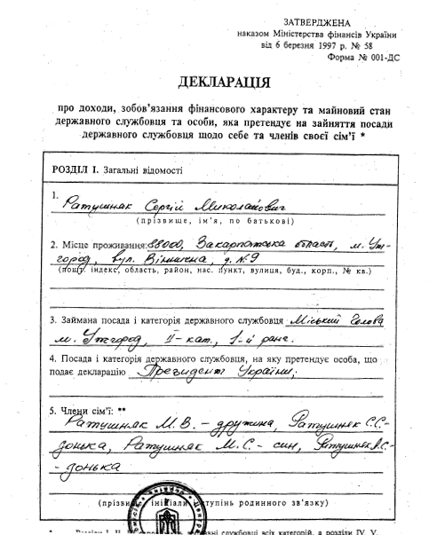 Останнім кандидатом у президенти ЦВК зареєструвала Сергія Ратушняка. Скандальний мер Ужгорода, який любить розпускати руки проти простих громадян, заробив своїми трудами скромні 95 418,79 гривень.