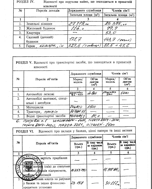 Справді майновий запас у кандидата пристойний. Він володіє земельною ділянкою площею 27 719 кв. м, житловим будинком площею 114 кв. м, дачним будинком площею 178,7 кв. м.