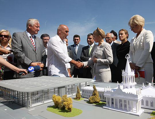 Ярославский показывает Тимошенко макет аэропорта в Харькове. Фото пресс-службы Ярославского